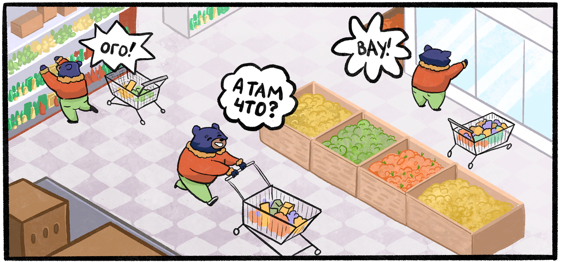Несложно увлечься, когда на полках полно вкусностей и цены приятные. Если еще и пахнет свежей выпечкой, а на глаза попадется румяная курочка гриль, устоять просто невозможно!